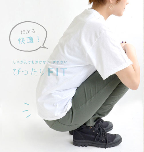秘密その2 しゃがんでも、浮かないずれないぴったりフィットし美脚にみえる